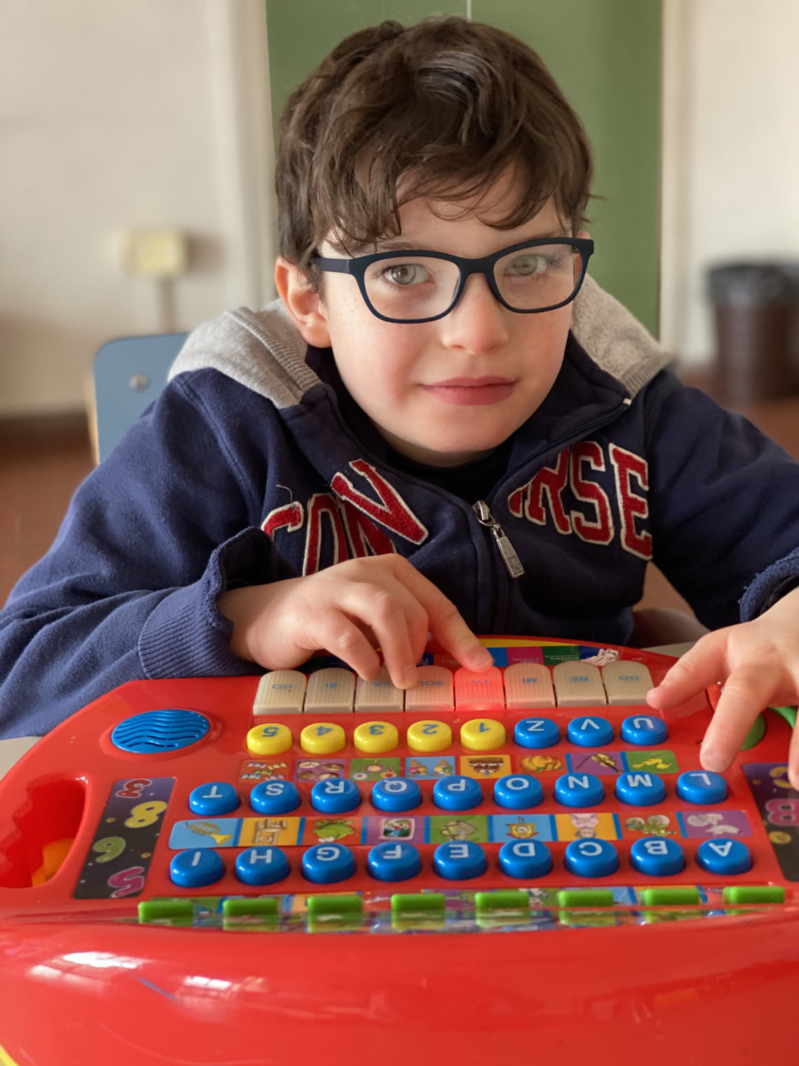 Nonostante il particolare periodo storico, con frequenza a singhiozzi causata da isolamenti e lockdown, siamo sempre riusciti a mantenere un contatto attivo con Orlando, anche con forme di didattica a distanza, rese possibili grazie alla sintonia nata, fin da subito, con famiglia ed educatori che seguono il bambino a casa. Il ritorno in presenza, purtroppo con alcuni luoghi ancora preclusi (laboratori, mensa, palestra…) ci consegna la speranza che si possa continuare senza più interruzioni, nel percorso positivo intrapreso, fatto di reciproco scambio: non è solo Orlando a crescere, dimostrando sempre crescente intenzionalità comunicativa, ma con lui anche i compagni e noi insegnanti, che da lui, dai suoi occhi azzurri, impariamo qualcosa ogni giorno.