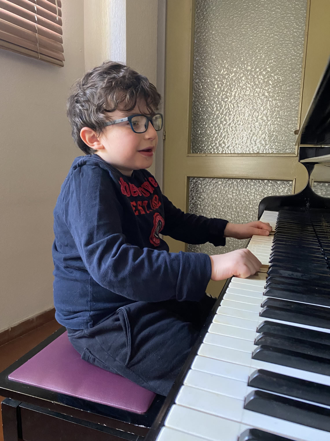 L’attività che più lo entusiasma afferisce all’ambito musicale: la sperimentazione attiva con la tastiera del pianoforte (intensità e suoni diversi o silenzi, collegati al suo tocco), nella gestione della relazione causa-effetto, che muove da un’intenzione e quindi causa piacere e gratifica con il risultato, mi ha permesso di costruire un nuovo ponte di dialogo emozionale, che prosegue con il gruppo classe nei momenti di musica d’insieme. L'esaltazione positiva che deriva da questi momenti ha un riverbero con effetto prolungato.